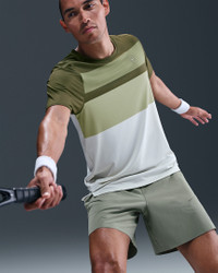 This slim-fit Advantage top lets you take the court with sweat-wicking, 4-way stretch material. The shoulder seam placement is designed to help you stay extra mobile while you rotate and drive through the ball. Benefits - Nike Dri-FIT technology moves sweat away from your skin for quicker evaporation, helping you stay dry and comfortable. - Stretchy, breathable fabric feels light and limits cling to your body. - The shoulder seam placement helps give you a smooth, natural feel through your swing. - Longer back hem provides extra coverage. Product Details - NikeCourt logo - 89% polyester/11% spandex - Machine wash - Imported - Shown: Medium Olive/White - Style: FZ9845-222 SIZE & FIT Model is wearing size M and is 5'11"179cm Sm fit: sleek and tailored