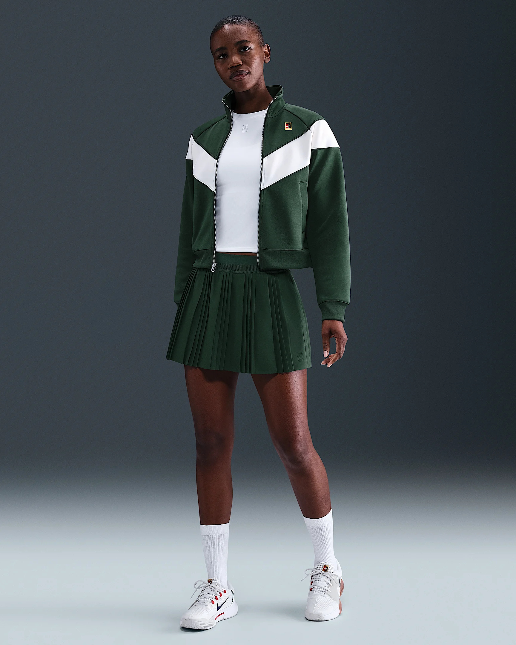 This timeless skirt is made with lightweight woven fabric for cool comfort on the court. Stretchy, built-in shorts give you secure coverage while pockets on both legs offer easy access to your essentials. Benefits - Nike Dri-FIT technology moves sweat away from your skin for quicker evaporation, helping you stay dry and comfortable. - Inner shorts let you tuck spare balls under the hem for convenient storage. - Mesh in elastic waistband enhances breathability. - Drop-in pockets on inner shorts fit most phones. Product Details - Body: 100% polyester. Tight/Panels lining: 78-79% polyester, 21-22% spandex. Elastic: 86% polyester/14% spandex. Gusset lining: 100% polyester. - Machine wash - Imported - Shown: Fir/Fir - Style: FZ6512-323 SIZE & FIT Standard fit: easy and traditional