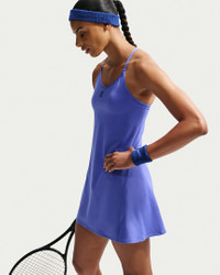 Make the most of every match in this tennis dress. Lined with a sweat-wicking bodysuit, the outer fabric is smooth and stretchy to help you move around the court with ease. Pockets on the interior shorts provide quick storage for balls and daily essentials. Benefits - Nike Dri-FIT technology moves sweat away from your skin for quicker evaporation, helping you stay dry and comfortable. - Internal bodysuit stretches easily and provides storage with drop-in pockets on both legs. - Angled side seams help you move with ease. Product Details - Shelf bra - Adjustable straps - Silicone NikeCourt logo - 76% polyester/24% spandex - Machine wash - Imported - Shown: Sapphire/Black - Style: IH3739-570 SIZE & FIT Model is wearing size S and is 5′10″178cm Sm fit: sleek and tailored