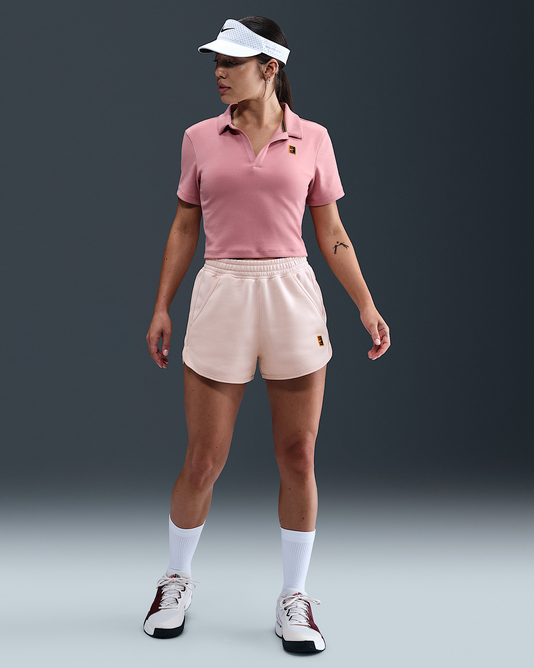 Classic court style gets a cozy update. Extra soft on the inside and smooth on the outside, these fleece shorts offer comfort while keeping their structured shape. Product Details - Curved hems - Hand pockets - Elastic waistband - NikeCourt patch at left hem - Body: 80% cotton/20% polyester. Pocket bags: 100% cotton. - Machine wash - Imported - Shown: Silt Red - Style: HJ8990-667 SIZE & FIT Model is wearing size S and is 5′6″168cm Standard fit: easy and traditional
