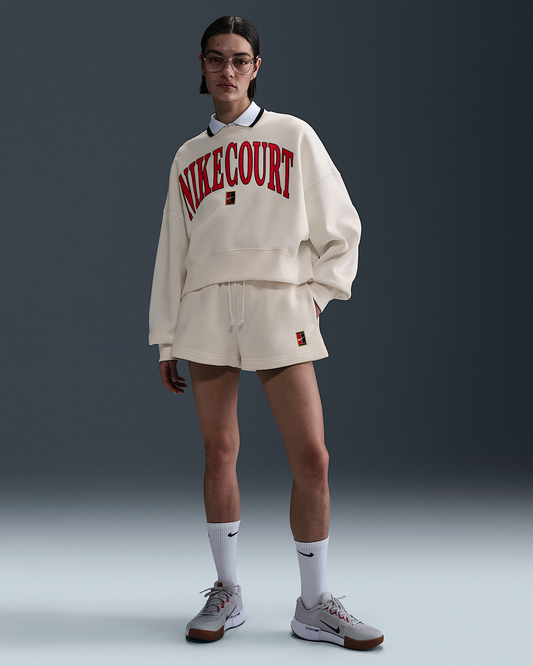 Stay cozy in these roomy NikeCourt shorts. They're made with midweight brushed fleece that feels extra soft on the inside and smooth on the outside. Product Details - Encased elastic waistband with drawcord - Hand pockets - NikeCourt logo patch on left thigh - Body: 80% cotton/20% polyester. Rib: 97% cotton/3% spandex. Pocket bag knuckle side: 100% cotton. - Machine wash - Imported - Shown: Pale Ivory - Style: HQ0364-110 SIZE & FIT Model is wearing size S and is 5′10″178cm Loose fit: roomy and relaxed