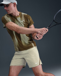Always match ready, these 7" tennis shorts are made with a lightweight woven fabric and sweat-wicking Dri-FIT technology to help keep you cool when the match heats up. Benefits - Nike Dri-FIT technology moves sweat away from your skin for quicker evaporation, helping you stay dry and comfortable. - Mesh-lined pockets hold small essentials. - Elastic waistband with drawcord provides a secure fit. Product Details - 7" inseam - Body/Pocket bags: 100% polyester - Machine wash - Imported - Shown: Olive Aura/White - Style: HM6514-371 SIZE & FIT Model is wearing size M and is 6′2″188cm Standard fit: easy and traditional