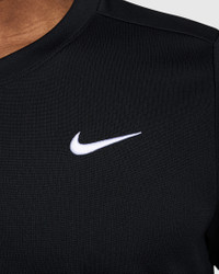 Breathable, stretchy and sweat-wicking, this classic-fit Victory top is ready to perform. The back shoulder seam placement is designed to help you stay extra mobile while you rotate and drive through the ball. Benefits - Nike Dri-FIT technology moves sweat away from your skin for quicker evaporation, helping you stay dry and comfortable. - Soft knit is lightweight and breathable. - Offset seam construction on the back helps with range of motion through your shot. - Side seam gussets provide extra stretch and mobility. Product Details - 100% polyester - Machine wash - Imported - Shown: Black/White - Style: FZ6921-010 SIZE & FIT Model is wearing size M and is 6′0″183cm Standard fit: easy and traditional