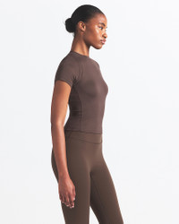Meet your new layering essential. Our Airy fabric keeps this form-fitting baby tee ultralightweight and breathable. Product Details - Front, side and back seam details - Silicone matte logo at center back neck - 92% nylon/8% spandex - Machine wash - Imported - Shown: NSKM DARK SEPIA - Style: TPTSH2738-DSP SIZE & FIT Model is wearing size S and is 5’11”180cm Tight fit: snug and form-fitting