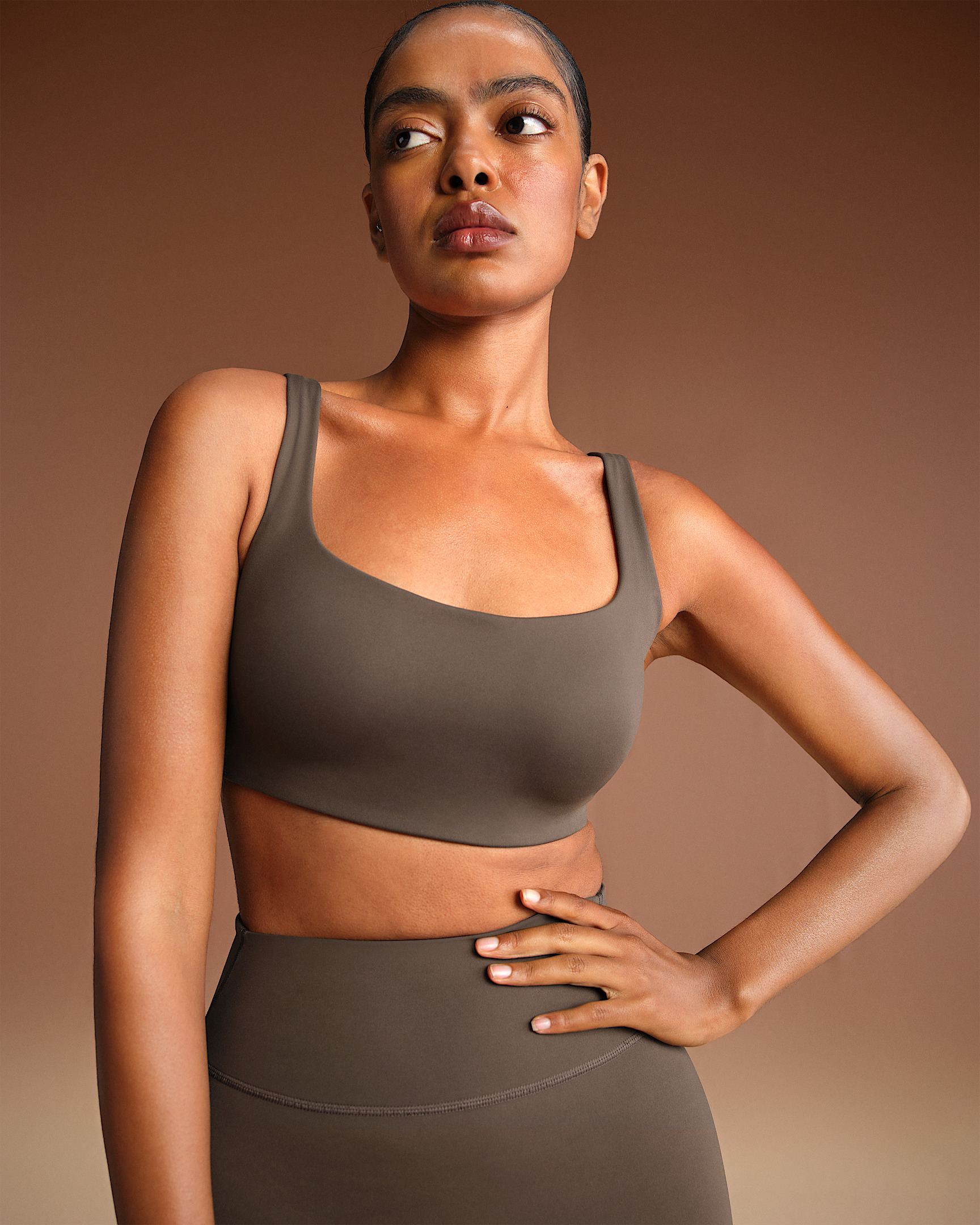 Offering medium support, this scoop-neck bra features built-in pads that mold to you and enhance your shape. It’s made with our sculpting Matte fabric and sweat-wicking Dri-FIT technology for a studio essential you can wear anywhere. Benefits - Our soft Matte fabric is designed to sculpt and smooth. - Nike Dri-FIT technology moves sweat away from your skin for quicker evaporation, helping you stay dry and comfortable. - Mesh lining helps add breathability. - Built-in foam molds to your bust for extra comfort and coverage. Product Details - Pullover style - Four-way stretch - Scoop neck - Silicone matte logo at center back - 83% polyamide/17% Lycra® spandex - Machine wash - Imported - Shown: NSKM Dark Sepia - Style: BRSPT2723-DSP SIZE & FIT Model 1 is wearing size S with a bust size of 34"86cm Model 2 is wearing size 2X with a bust size of 51"130cm Tight fit: snug and form-fitting Medium support: feels ke a snug hold to keep everything in place