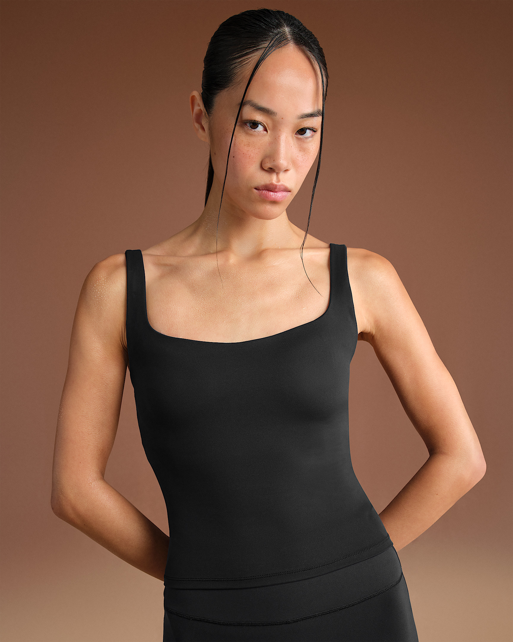 Made with our sculpting Matte fabric, this square-neck tank features thin, built-in pads that mold to your body for comfortable coverage. We added our sweat-wicking Dri-FIT technology to make it a studio essential you can wear anywhere. Benefits - Our soft Matte fabric is designed to sculpt and smooth. - Nike Dri-FIT technology moves sweat away from your skin for quicker evaporation, helping you stay dry and comfortable. - Thin, built-in pads mold to your body for comfortable coverage. Product Details - Four-way stretch - Square neck - Silicone matte logo at center back neck - 83% polyamide/217% Lycra® spandex - Machine wash - Imported - Shown: NSKM Obsidian - Style: TPTNK2728-OBD SIZE & FIT Model 1 is wearing size S and is 5'8"173cm Model 2 is wearing size 2X and is 5'8"173cm Tight fit: snug and form-fitting
