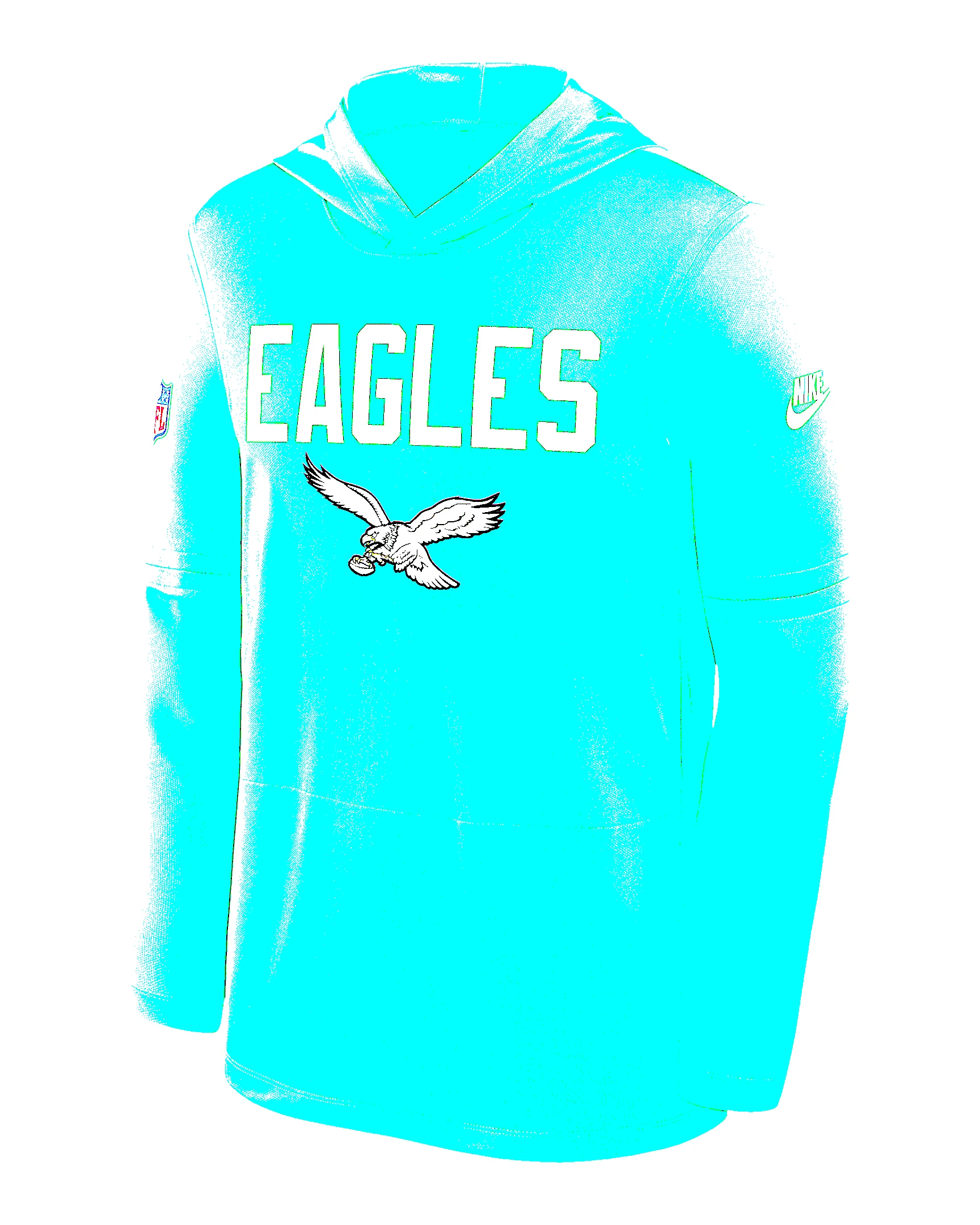 Perfect for lightweight coverage, the Pass Accuracy Top helps you comfortably support the Philadelphia Eagles. It features sweat-wicking technology for ultimate comfort. Benefits - Nike Dri-FIT technology moves sweat away from your skin for quicker evaporation, helping you stay dry and comfortable. - Rounded drop-tail hem helps provide proper coverage. Product Details - Hood without drawstring - 100% recycled polyester - Machine wash - Imported - Shown: Green - Style: 03B930RQ86-D60