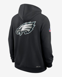This Philadelphia Eagles Utility Player Sideline Hoodie combines sweat-wicking technology with a soft fleece lining to help create a warm, comfortable feel in cold temps. Benefits - Nike Dri-FIT technology moves sweat away from your skin for quicker evaporation, helping you stay dry and comfortable. - Dolman sleeves help increase range of motion with a roomy fit under the arms. Product Details - Hood with drawstring - Front pocket - Zippered pocket at right side - 53% polyester/47% cotton - Machine wash - Imported - Shown: Black - Style: 03AV00A86-2FB