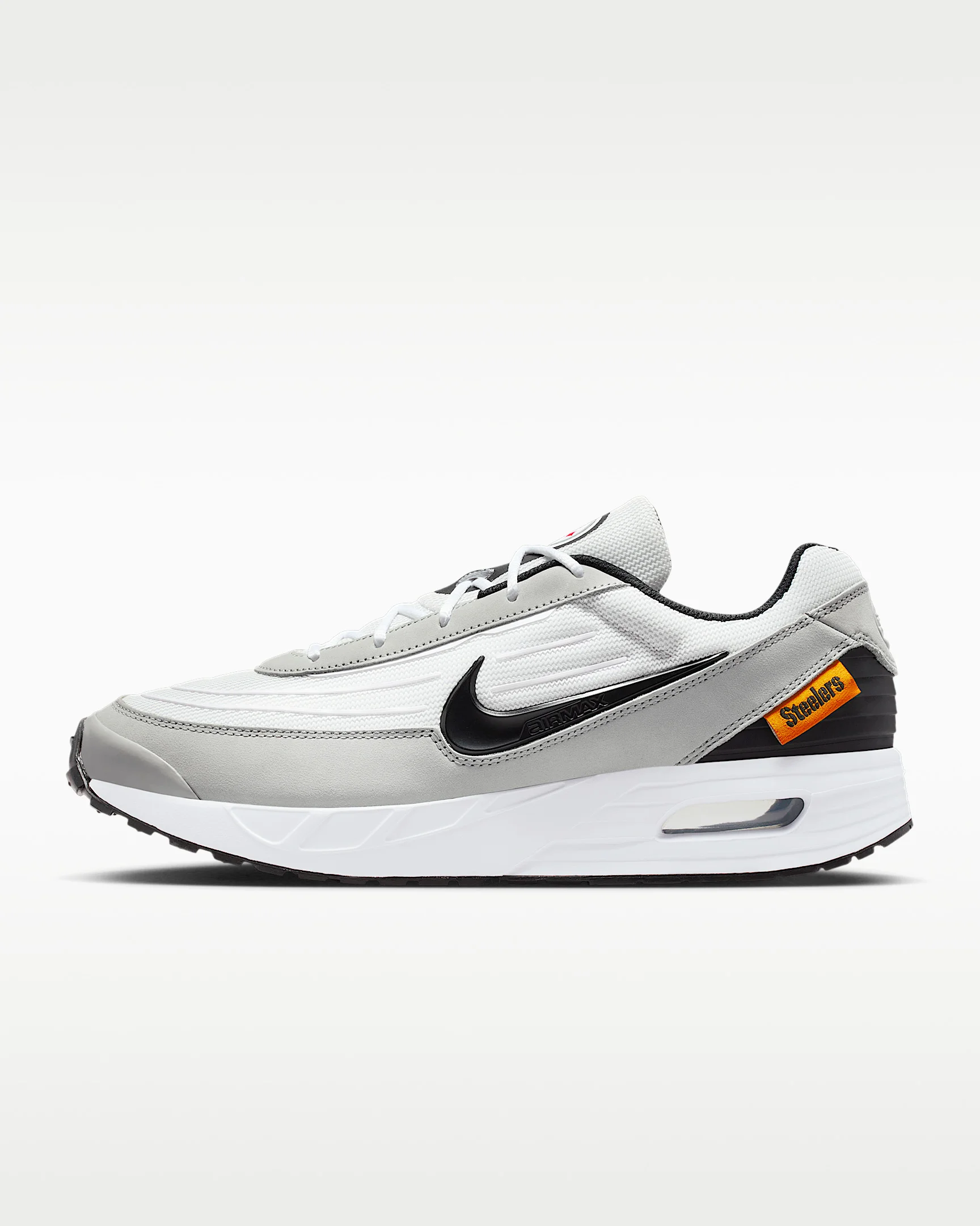 Max Air, max versatility, max fandom. Take your love for the Steelers to a whole new level with the Air Max Verse. It brings depth and texture to your look thanks to clean lines, mixed materials and rubberized details. A Max Air unit in the heel adds just the right amount of cushioning. Benefits - Mesh upper with leather overlays is breathable and durable. - Plush and comfortable, Max Air cushioning has just the right amount of support. - Waffle outsole provides grip for wherever your day takes you. Product Details - Foam midsole - Rubber outsole - Shown: White/Black/Black - Style: IH2226-100