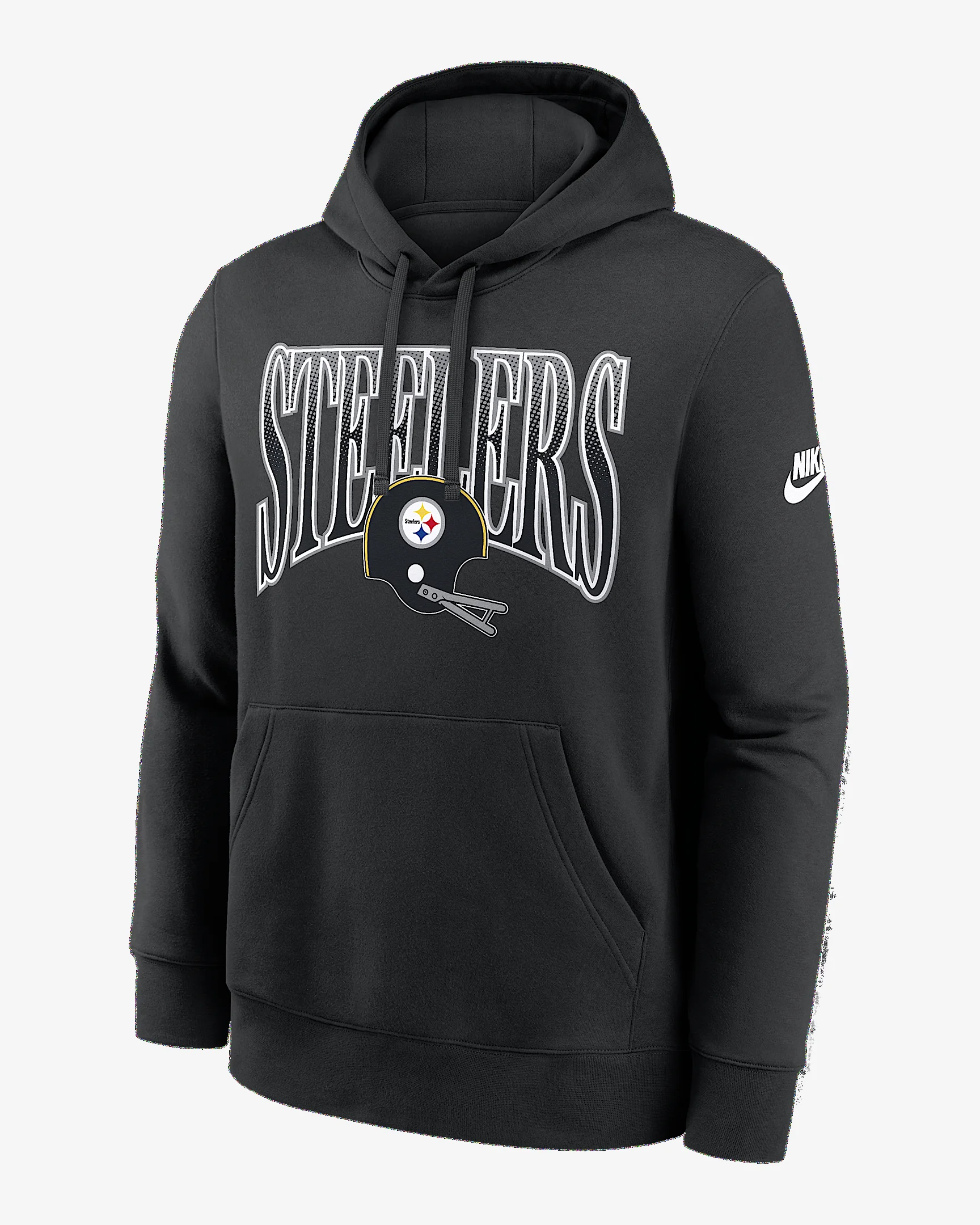 Designed with throwback team details, this Rewind Club Hoodie features a cozy fleece lining to help you comfortably support the Pittsburgh Steelers in chilly temperatures. Product Details - Hood with drawstring - Front pocket - 82% cotton/18% polyester - Machine wash - Imported - Shown: Black - Style: NKDK00A7LV-2YT