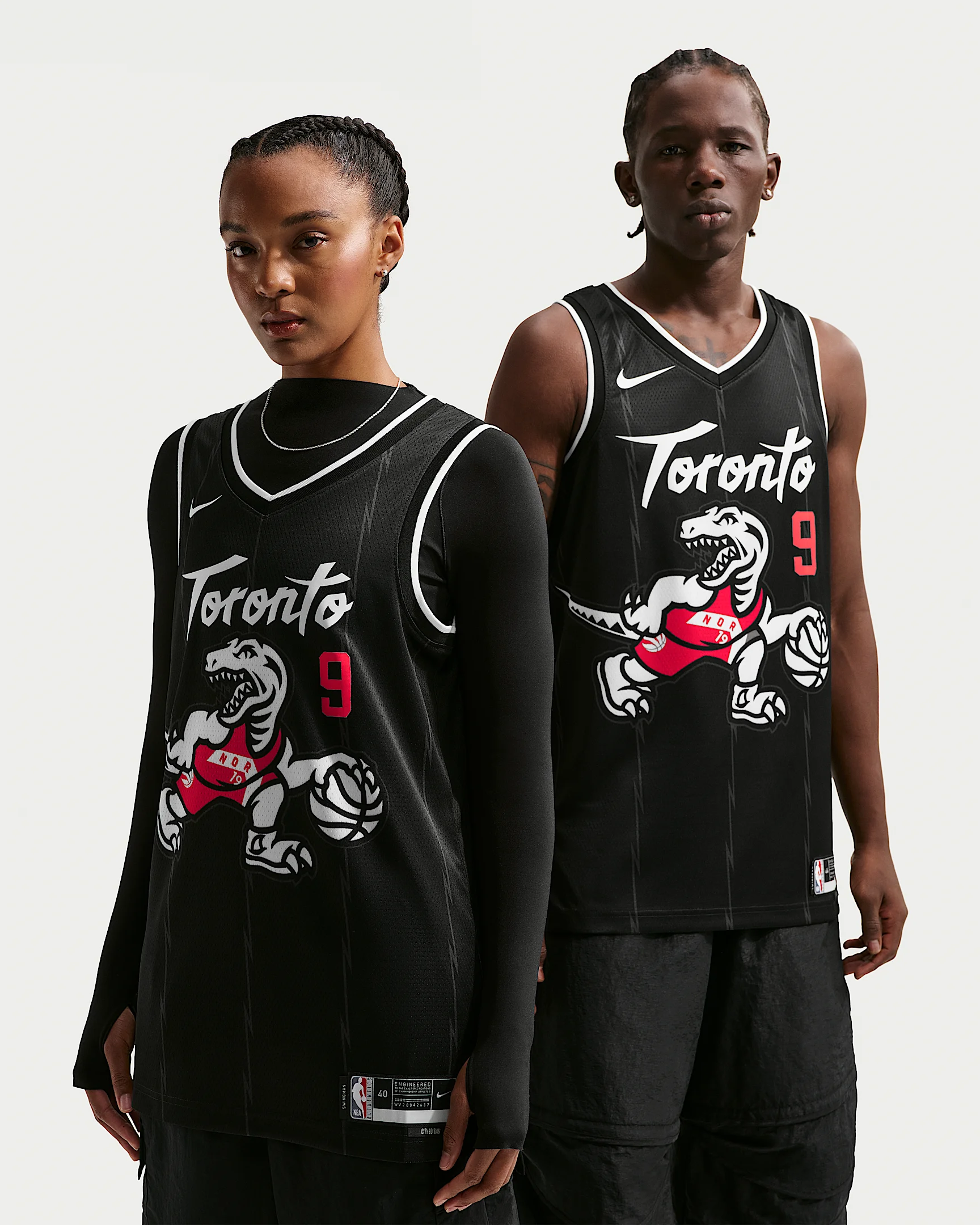 A reimagining of the iconic 2021-22 design, the Toronto Raptors 2025-26 City Edition uniform blends history with evolution. Gold gives way to Canada’s own colors — red and white — sharpening the look and channeling the city’s relentless energy. A uniform that unites city pride with national identity, worn by Toronto and carried by the North. Product Details - 100% polyester - Machine wash - Imported - Shown: Black - Style: HM5997-012 SIZE & FIT Standard fit: easy and traditional