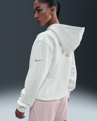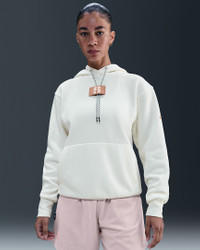 Whether you’re fine-tuning your craft on the court like Sabrina Ionescu or chilling off-court, this versatile, all-gender signature collection is for you. This hoodie's easy fit and midweight brushed fleece help you stay comfortable. And while you're moving, your drawcords don't have to. Lock the cords at your preferred length and tuck them behind the logo patch so you can keep reaching without anything getting in your way. If you typically wear men's styles, we recommend ordering your usual size. If you typically wear women's styles, we recommend sizing down. Benefits - Ribbed cuffs and hem help keep the hoodie in place while you move. - Our midweight brushed fleece feels extra soft on the inside and smooth on the outside, helping you stay cozy while keeping its structured shape. - Kangaroo pocket gives you place to keep your hands warm or store your essentials. Product Details - Cotton jersey lining inside hood - Body: 80% cotton/20% polyester. Hood Lining: 100% cotton. - Machine wash - Imported - Shown: Sail/Rose Gold/Washed Coral/Rose Gold - Style: FJ4449-133 SIZE & FIT Model is wearing size XL and is 6′0″183cm Standard fit: easy and traditional If you typically wear men's styles, please select your usual size. If you typically wear women's styles, please size down.