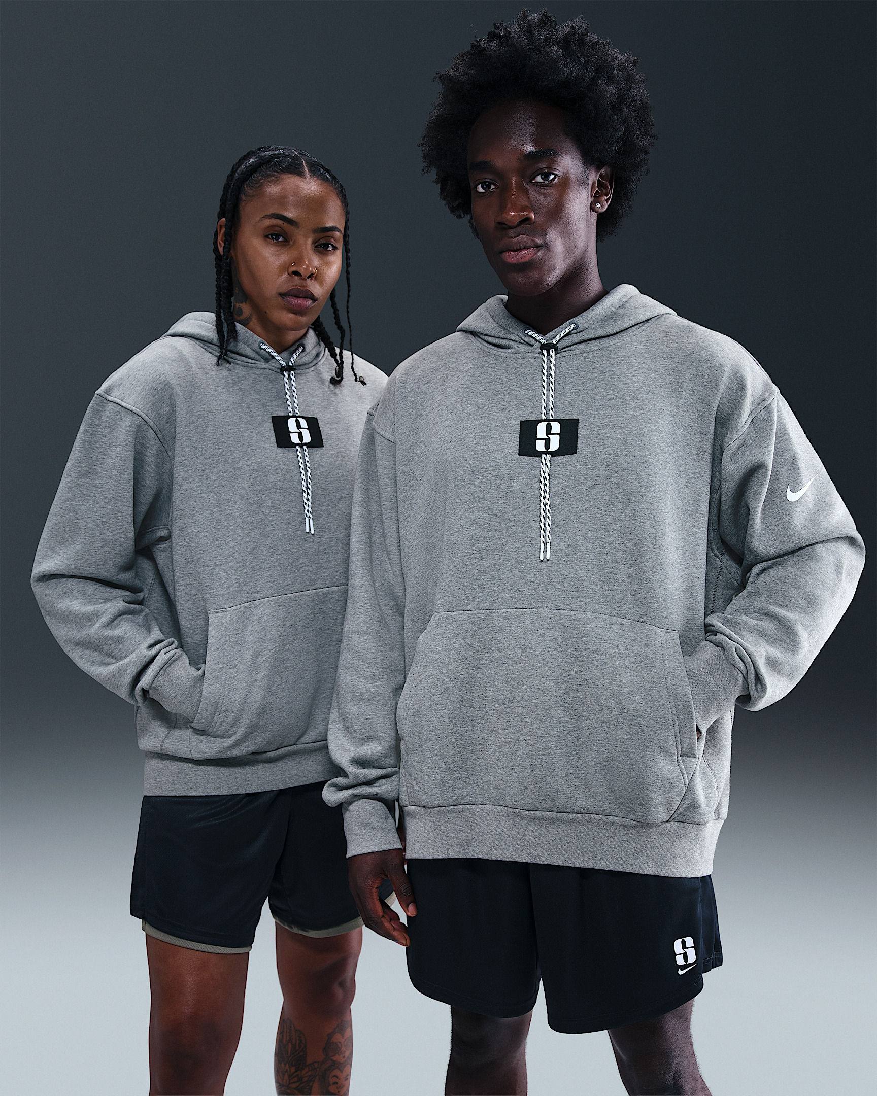 Whether you’re fine-tuning your craft on the court like Sabrina Ionescu or chilling off-court, this versatile, all-gender signature collection is for you. This hoodie's easy fit and midweight brushed fleece help you stay comfortable. And while you're moving, your drawcords don't have to. Lock the cords at your preferred length and tuck them behind the logo patch so you can keep reaching without anything getting in your way. If you typically wear men's styles, we recommend ordering your usual size. If you typically wear women's styles, we recommend sizing down. Benefits - Ribbed cuffs and hem help keep the hoodie in place while you move. - Our midweight brushed fleece feels extra soft on the inside and smooth on the outside, helping you stay cozy while keeping its structured shape. - Kangaroo pocket gives you place to keep your hands warm or store your essentials. Product Details - Cotton jersey lining inside hood - Body: 80% cotton/20% polyester. Hood Lining: 100% cotton. - Machine wash - Imported - Shown: Carbon Heather/Black - Style: FJ4449-092 SIZE & FIT Standard fit: easy and traditional If you typically wear men's styles, please select your usual size. If you typically wear women's styles, please size down.