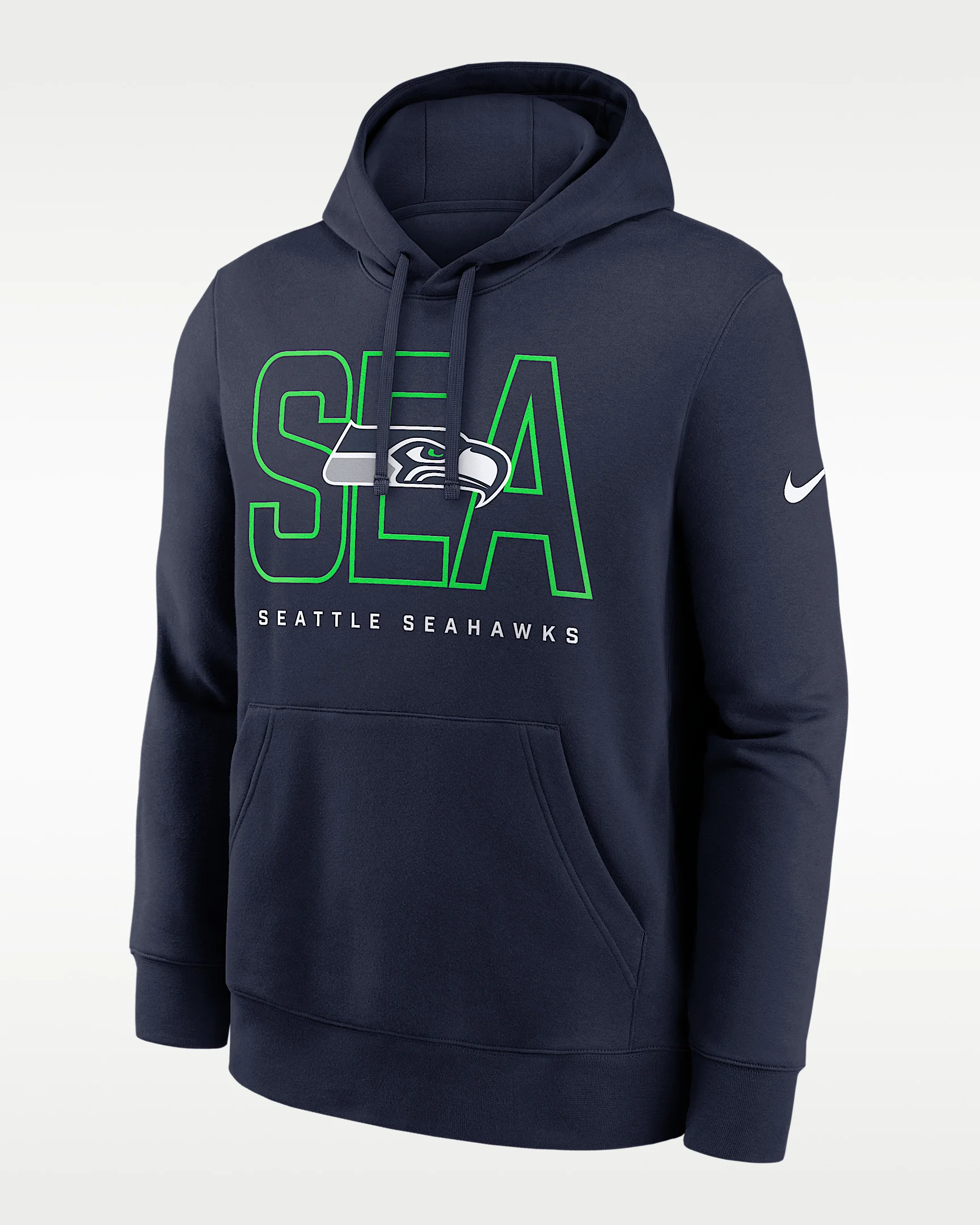 Designed with bold team graphics, this Busted Play Club Hoodie features a cozy fleece lining to help you comfortably support the Seattle Seahawks in chilly temperatures. Product Details - Front pocket - Hood with drawstring - 82% cotton/18% polyester - Machine wash - Imported - Shown: Navy - Style: NKDK41S78-E7N