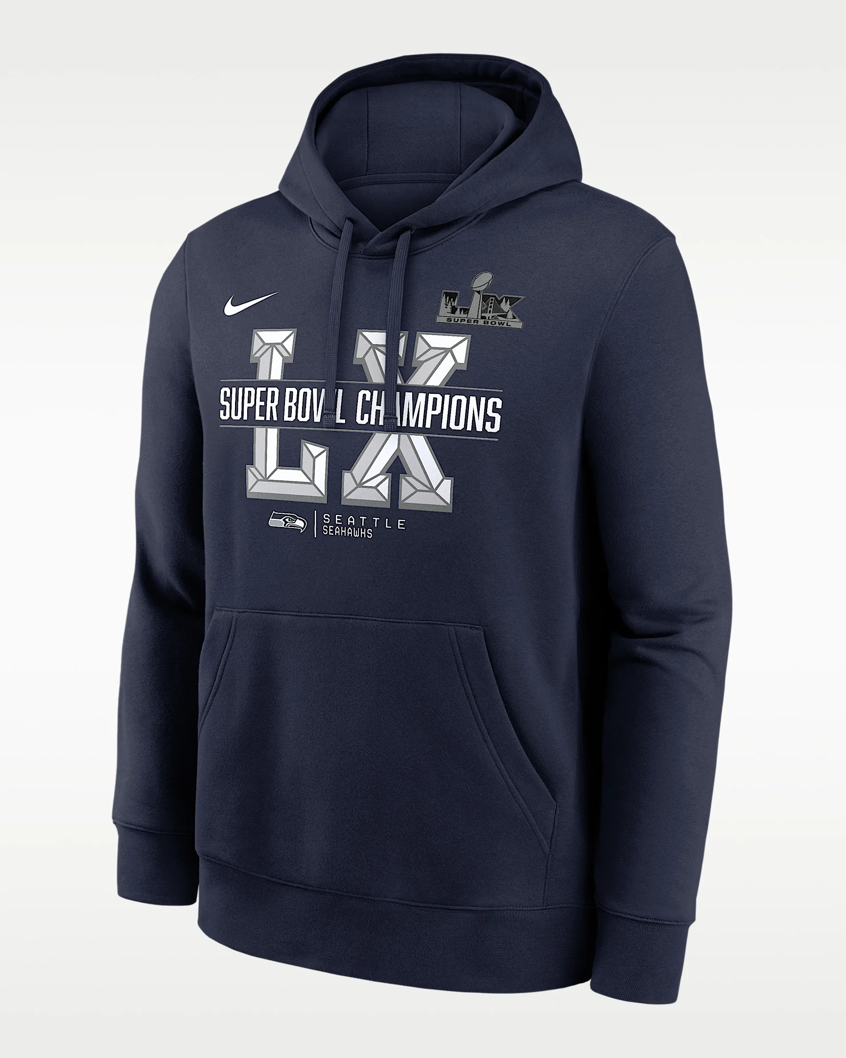 This Super Bowl LX Champions Sacrifice Hoodie features a cozy fleece lining and bold commemorative graphics across the chest to help you comfortably celebrate the Seattle Seahawks capturing the Lombardi Trophy. Product Details - Hood with drawstring - Front pocket - 82% cotton/18% polyester - Machine wash - Imported - Shown: College Navy - Style: NKDK41S78X-AVB