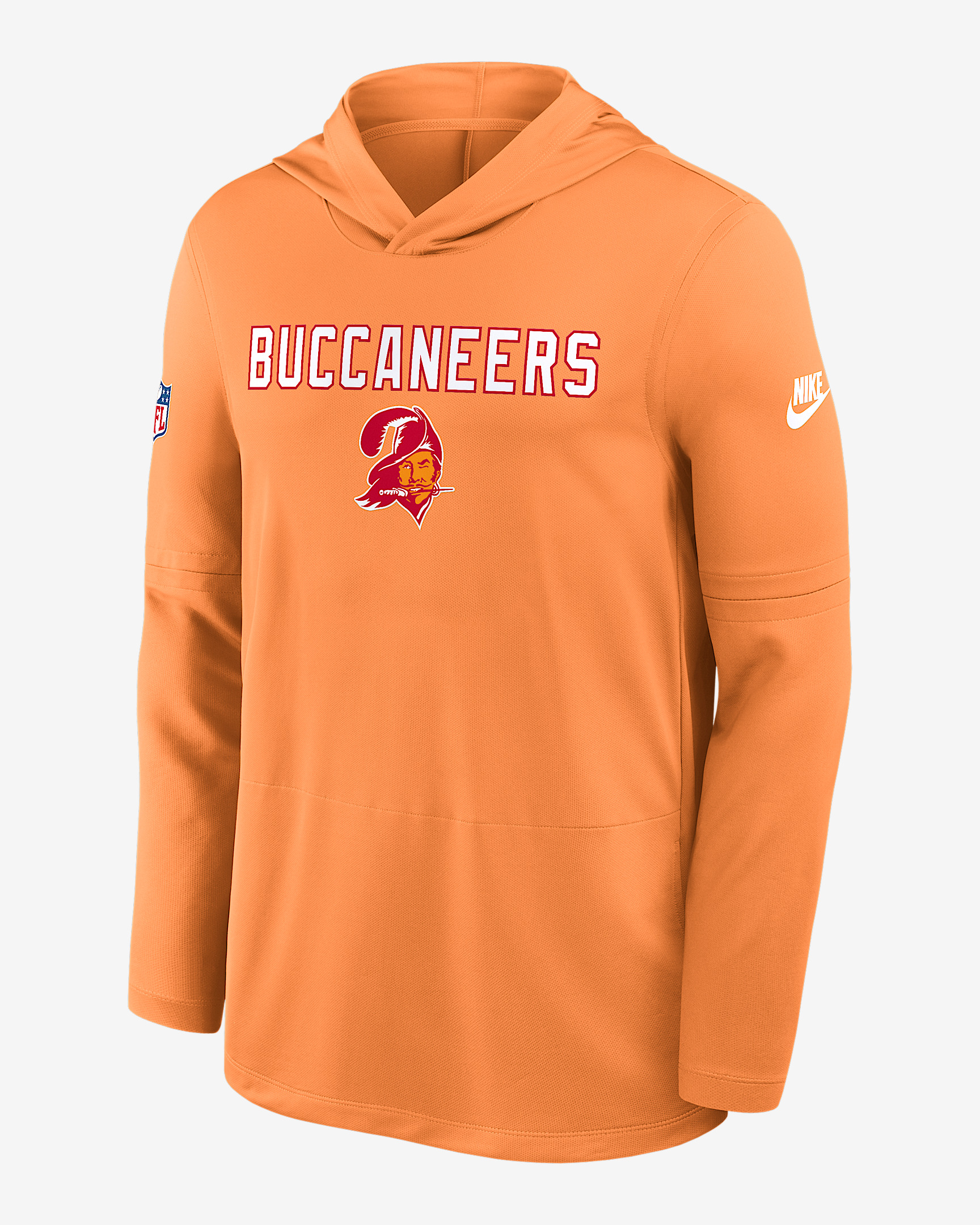 Perfect for lightweight coverage, the Pass Accuracy Top helps you comfortably support the Tampa Bay Buccaneers. It features sweat-wicking technology for ultimate comfort. Benefits - Nike Dri-FIT technology moves sweat away from your skin for quicker evaporation, helping you stay dry and comfortable. - Rounded drop-tail hem helps provide proper coverage. Product Details - Hood without drawstring - 100% recycled polyester - Machine wash - Imported - Shown: Orange - Style: 03B983TQ8B-D60