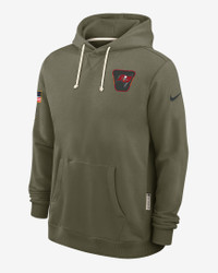 Featuring a military-inspired design, the Salute to Service Sideline Dominant Force Hoodie combines sweat-wicking technology with a soft fleece lining to help you comfortably support the Tampa Bay Buccaneers and active or retired service members in cooler weather. Benefits - Nike Dri-FIT technology moves sweat away from your skin for quicker evaporation, helping you stay dry and comfortable. - Dolman sleeves help increase range of motion with a roomy fit under the arms. Product Details - Hood with drawstring - Front pocket - Zippered pocket at right side - 53% polyester/47% cotton - Machine wash - Imported - Shown: Olive - Style: 03AZ2DHA2V-D4V