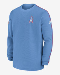 The Tennessee Titans Logo Coach Top features brushed waffle fabric to help create a warm, breathable feel in cooler conditions. Product Details - 82% polyester/18% cotton - Machine wash - Imported - Shown: Light Blue - Style: 02FA01VQQ8F-9BM