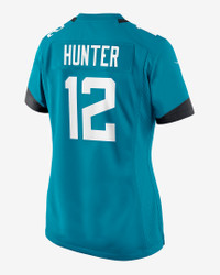 Rep one of your team's new stars with this Travis Hunter Jersey. Proper ventilation and a form fit help provide a dry, comfortable wear with the authentic look of the on-field uniform for the Jacksonville Jaguars. Benefits - Screen-printed name, number and team mark offer lightweight durability. - Ventilation over major heat zones helps keep you cool. Product Details - Standard fit for a relaxed, easy feel - NFL shield at V-neck - Tagless neck label - Woven jock tag - 100% polyester - Machine wash - Imported - Shown: Teal - Style: 67NWJJGA9NF-3EV