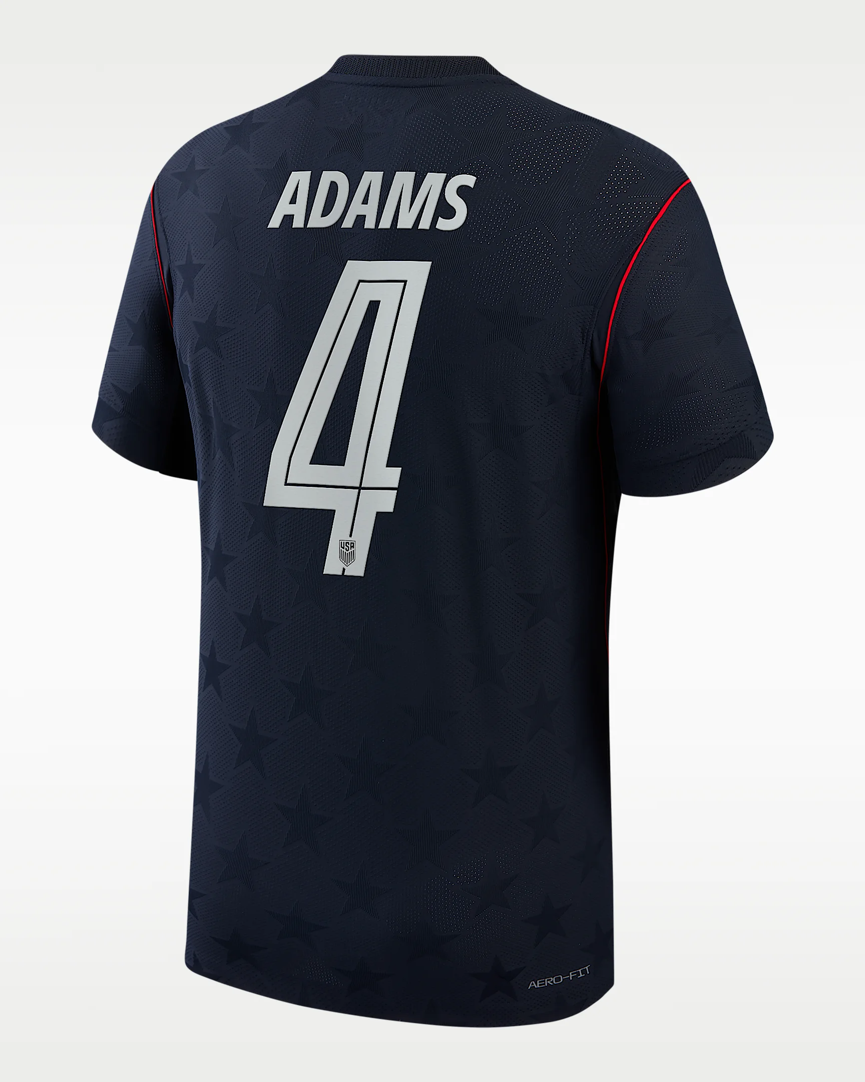 Built for comfort, this Tyler Adams Match jersey brings together sweat-wicking technology and lightweight material to help you experience the same fit and performance as your favorite USMNT player. The official on-field design adds an authentic touch for passionate fans. Benefits - Nike Dri-FIT ADV technology combines moisture-wicking fabric with advanced engineering and features to help you stay dry and comfortable. - Informed by athlete testing, open-hole fabric in high-heat zones helps you stay cool when the game heats up. - Authentic design is the same look worn by the pros on the field. Product Details - 100% polyester - Machine wash - Imported - Shown: Blue - Style: NN203943355-USM