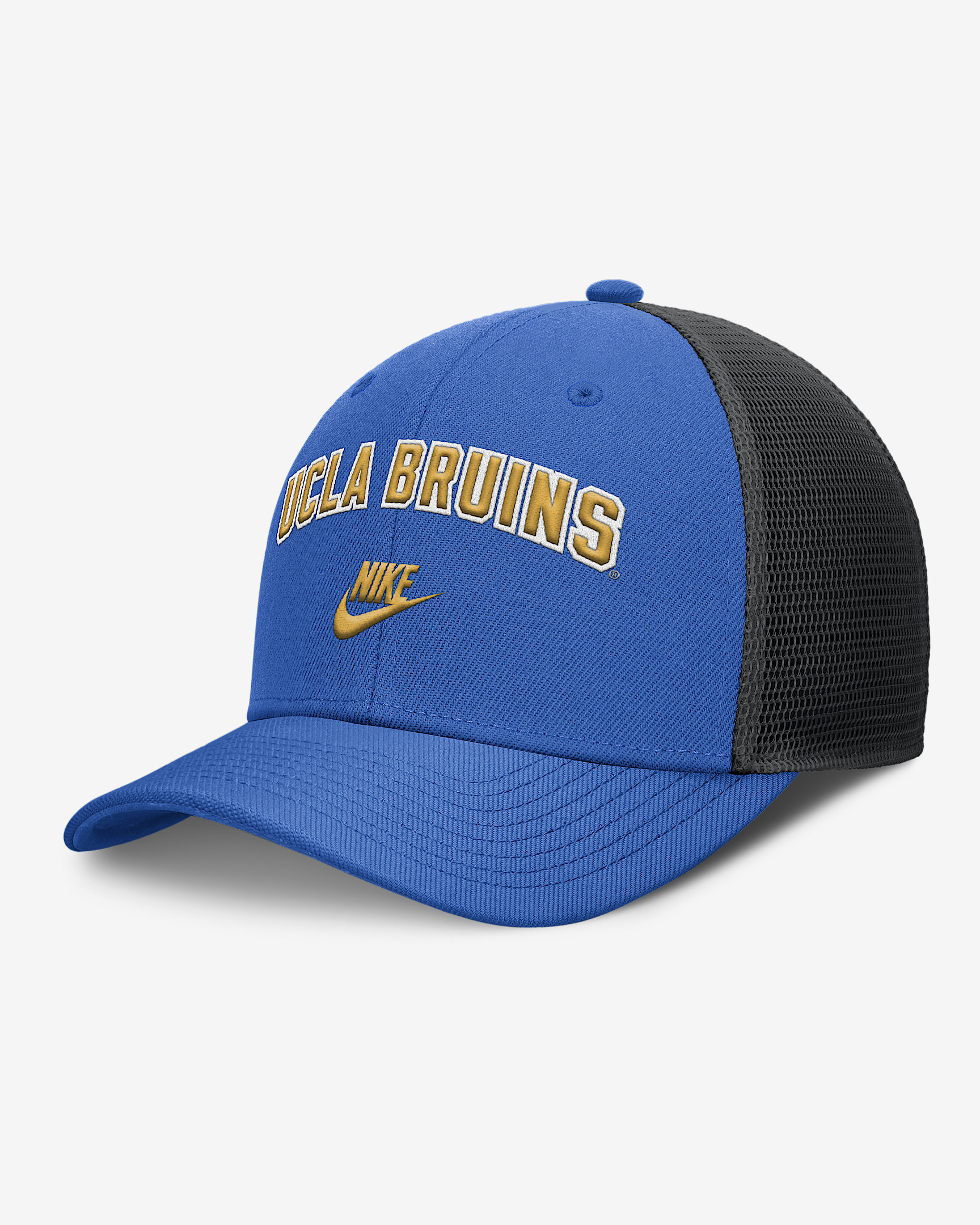 Featuring a 2-tone design and embroidered team details, the Legacy Arch Rise Hat lets you effortlessly showcase support for UCLA. Its sweat-wicking technology and trucker construction with four mesh panels help provide a breathable, comfortable feel. Benefits - Nike Dri-FIT technology moves sweat away from your skin for quicker evaporation, helping you stay dry and comfortable. - Snapback closure provides a customizable fit. Product Details - 6-panel design - Embroidered eyelets - 100% polyester - Hand wash - Imported - Shown: Blue - Style: NC130CYGUCV-DUH