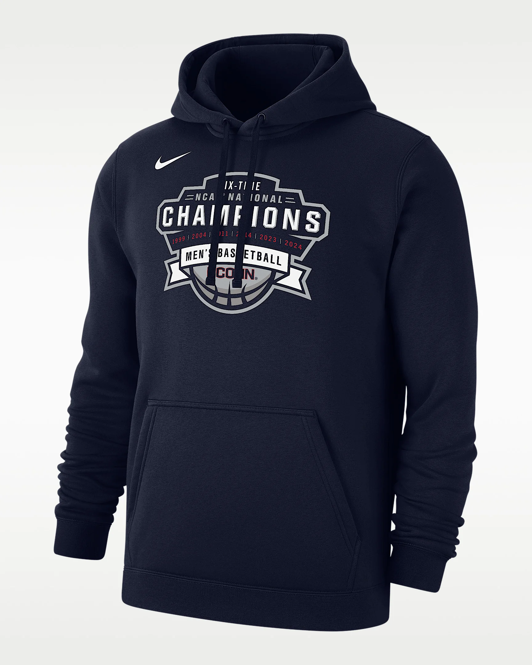 Celebrate UConn’s six national championships in this comfortable cotton sweatshirt that combines classic style with the soft comfort of Nike Club Fleece. Product Details - Standard fit - Midweight brushed fleece - Ribbed hem and cuffs - Kangaroo pocket - 80% cotton/20% polyester - Machine wash - Imported - Shown: Navy - Style: M31777P4682-NVY