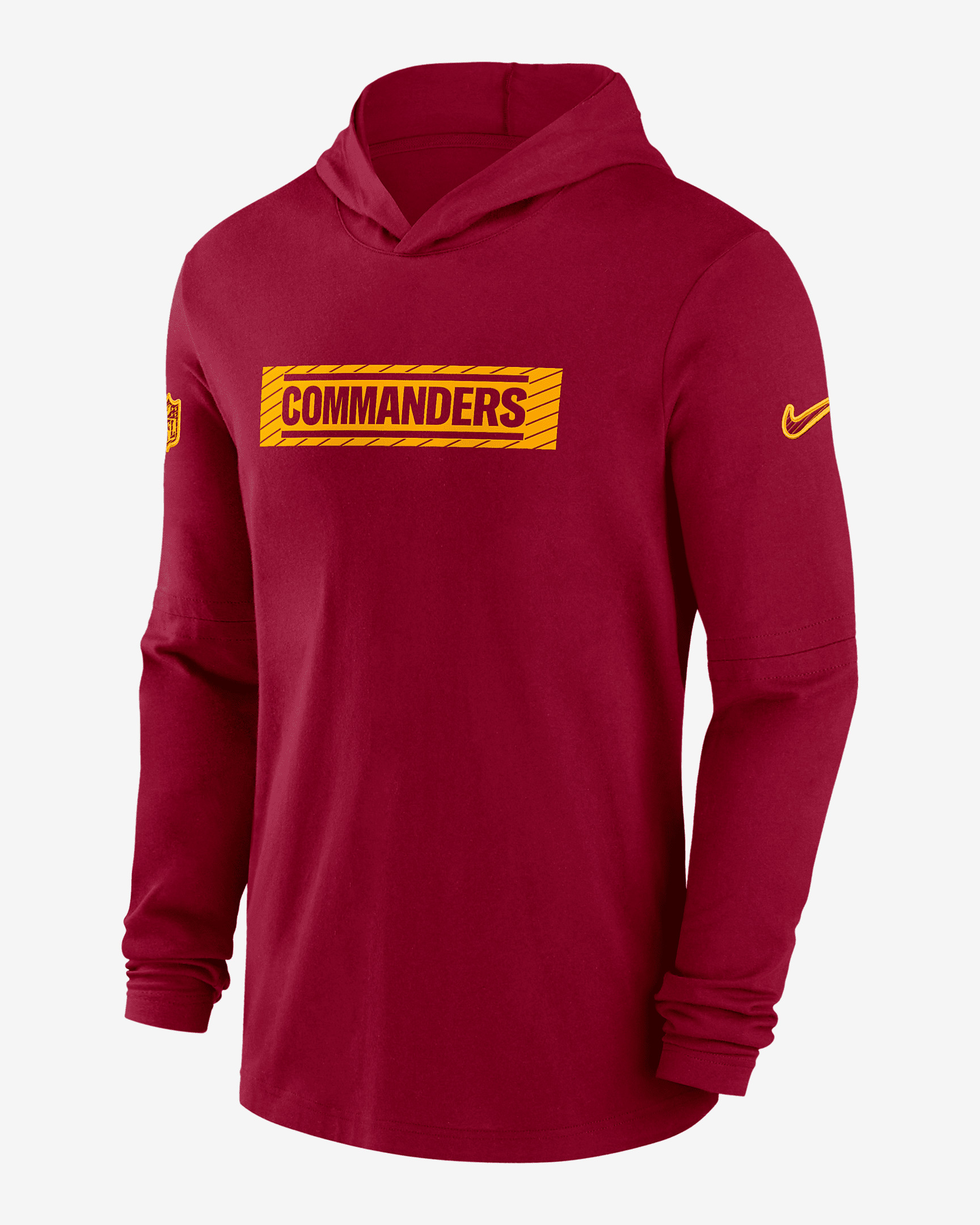 As a versatile layer for game day, the Washington Commanders Sideline Top combines sweat-wicking technology with lightweight, stretchy fabric and a French terry lining for ultimate comfort. Its removable sleeve seams provide the option of a short-sleeve style. Benefits - Nike Dri-FIT technology moves sweat away from your skin for quicker evaporation, helping you stay dry and comfortable. - 4-way stretch fabric helps create a flexible fit. Product Details - Hood without drawstring - 91% recycled polyester/9% elastane - Machine wash - Imported - Shown: Red - Style: 02FC67P9E-CAM