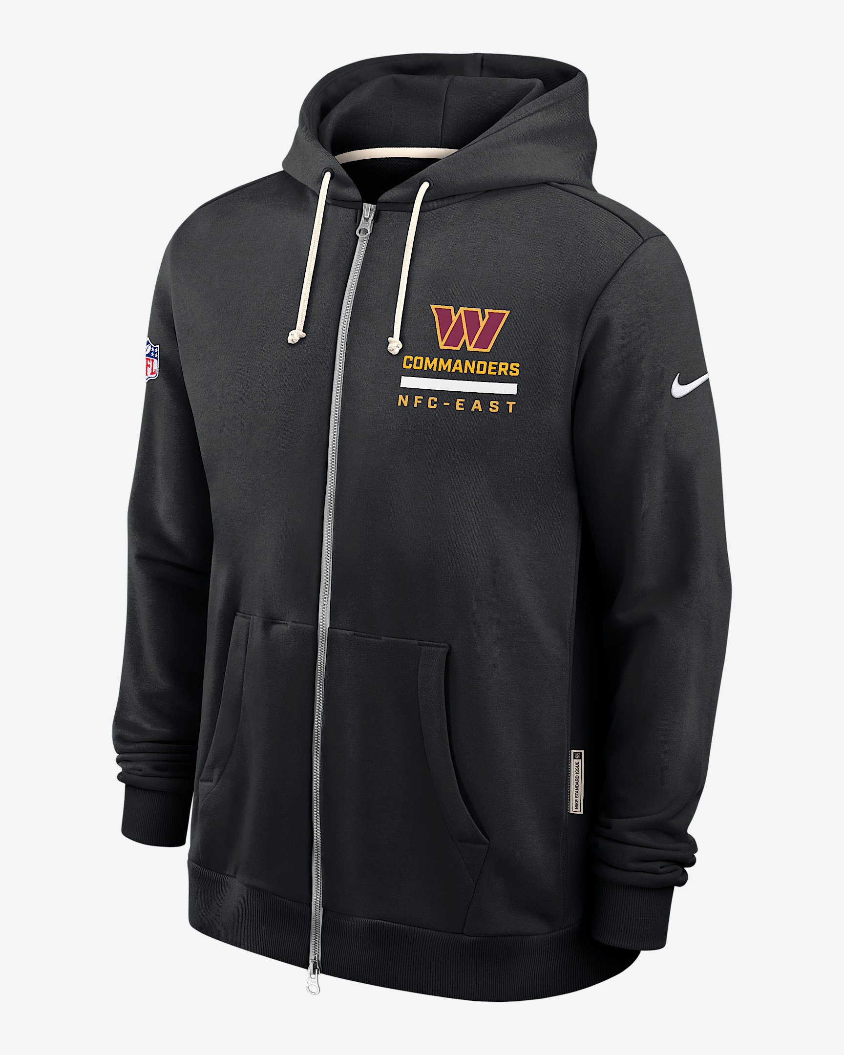 This Washington Commanders Utility Player Sideline Hoodie combines sweat-wicking technology with a soft fleece lining to help create a warm, comfortable feel in cold temps. Benefits - Nike Dri-FIT technology moves sweat away from your skin for quicker evaporation, helping you stay dry and comfortable. - Dolman sleeves help increase range of motion with a roomy fit under the arms. Product Details - Hood with drawstring - Front pocket - Zippered pocket at right side - 53% polyester/47% cotton - Machine wash - Imported - Shown: Black - Style: 03AV00A9E-2FB
