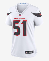 Rep one of your team's top stars with this Houston Texans Jersey. Proper ventilation and a form fit help provide a dry, comfortable wear with the authentic look of the on-field uniform. Benefits - Screen-printed name, number and team mark offer lightweight durability. - Ventilation over major heat zones helps keep you cool. Product Details - Standard fit for a relaxed, easy feel - NFL shield at V-neck - Tagless neck label - Woven jock tag - 100% polyester - Machine wash - Imported - Shown: White - Style: 67NW0B9N9HF-D1C