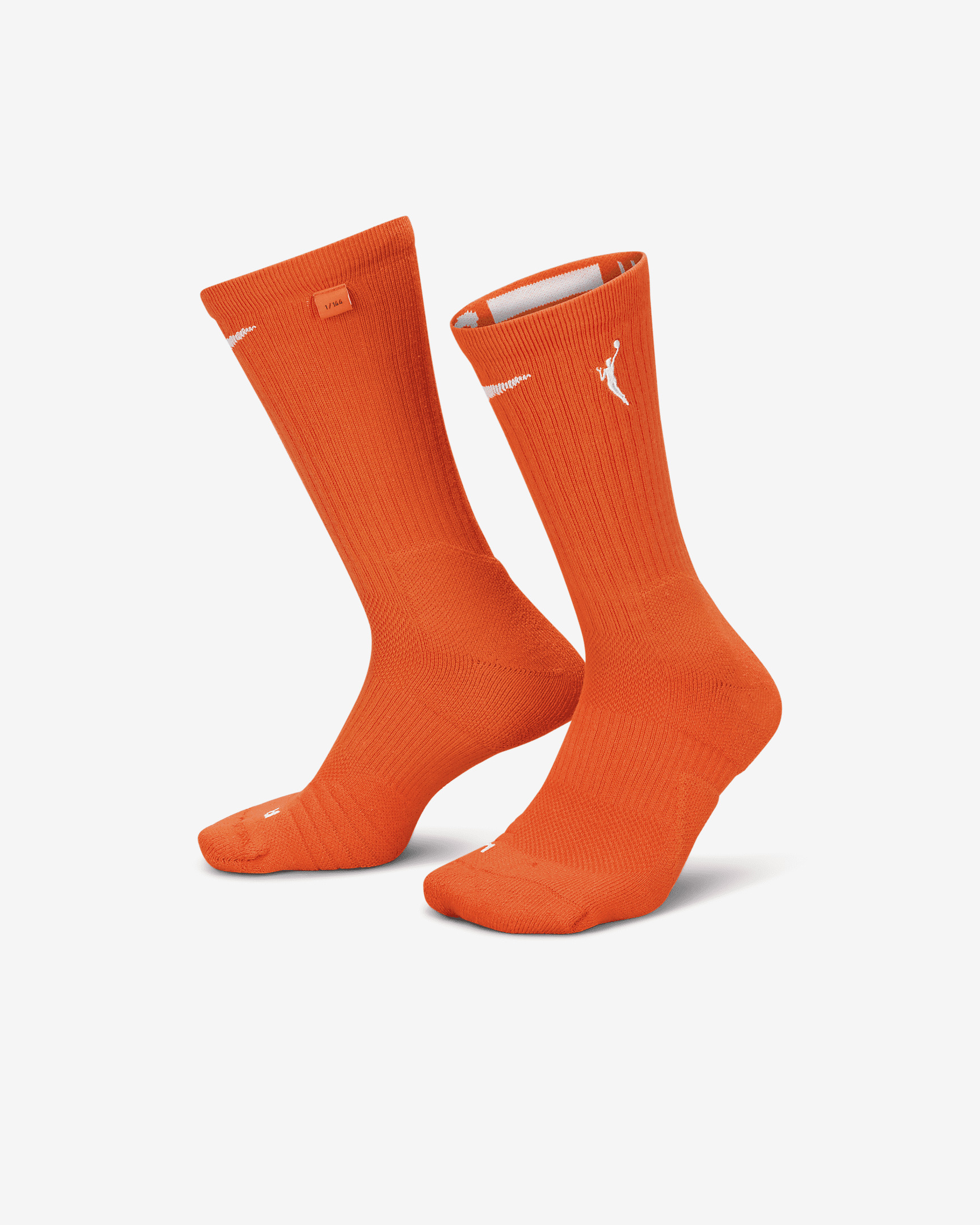 The perfect companion when you're gearing up to play, these WNBA Elite Socks are ultra-soft, stretchy and snug, with a logo detail on the side. Ready to ball? Benefits - Nike Dri-FIT technology moves sweat away from your skin for quicker evaporation, helping you stay dry and comfortable. - Zonal cushioning helps absorb impact. - Arch band offers a snug, secure fit. - Ribbed traction at the forefoot helps reduce slipping inside the shoe. Product Details - 80% polyester/15% cotton/3% nylon/2% spandex - Machine wash - Imported - Shown: Brilliant Orange/White - Style: DN1035-800
