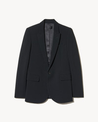 Single breasted slim blazer. Logo horn button closure. Chest welt pocket. Flap pockets. Full length sleeve. Fully constructed. Chest piece. Darts at front. Center back vent. Fully lined. - 69% Triacetate, 31% Polyester - Hand wash - Do not bleach - Do not tumble dry - Low iron - Dry clean