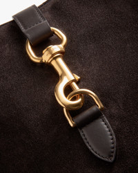 Shoulder bag in Italian suede and leather. Soft, semi-structured hand feel. Signature gold hardware. Italian suede interior lining. Adjustable shoulder strap. Interior zipper pocket. - 100% Calfskin - Professional leather care only