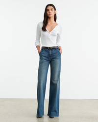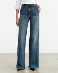 Cut from a stretch-denim in our classic wash, the Anna Jean features a high waisted, wide-leg fit in a trouser silhouette. Whisker detailing in the wash gives it an authentic vintage look. Features a zipper fly and two welt pockets at the back. Made in USA SIZE & FIT Model is 5'11 and wears a size 26. Model measurements are 32.5" bust, 26" waist, and 36" low hip. For exact measurements by size, view our size guide. COMPOSITION & CARE 98% COTTON, 2% POLYURETHANE, MADE IN AMERICA. MACHINE WASH COLD TUMBLE DRY LOW COOL IRON DO NOT BLEACH DO NOT DRY CLEAN