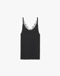 Sweater tank in 2 ply silk. Fine gauge rib stitch. Inserted lace combo at front chest. Slim fit. Straps in full needle rib. - 100% SILK - Dry clean recommended