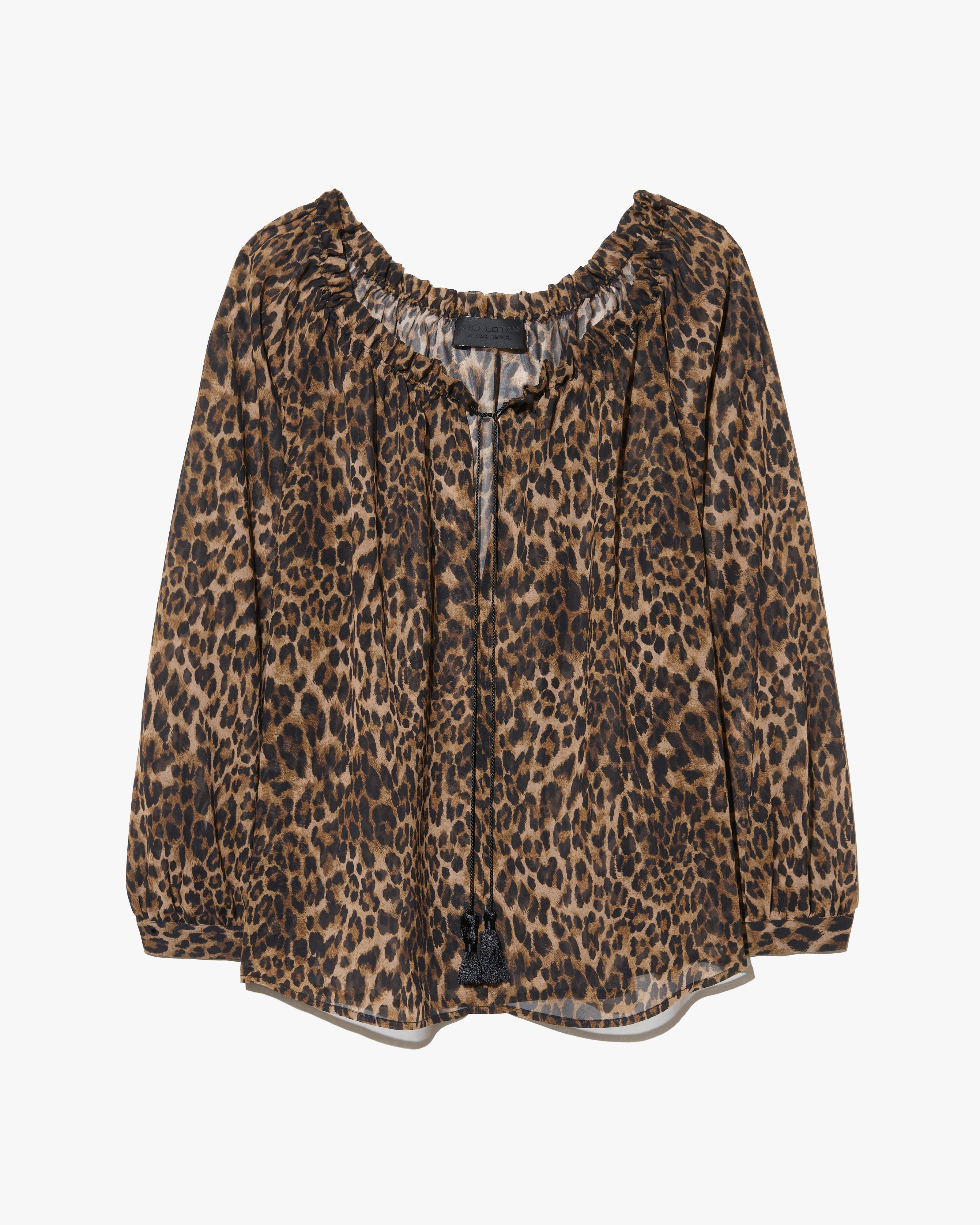 Relaxed blouse in silk double georgette. Tassel tie detail. Cinched neckline. Button closure at cuff. Slightly sheer. Made in USA COMPOSITION & CARE 100% Silk Dry clean only Low iron