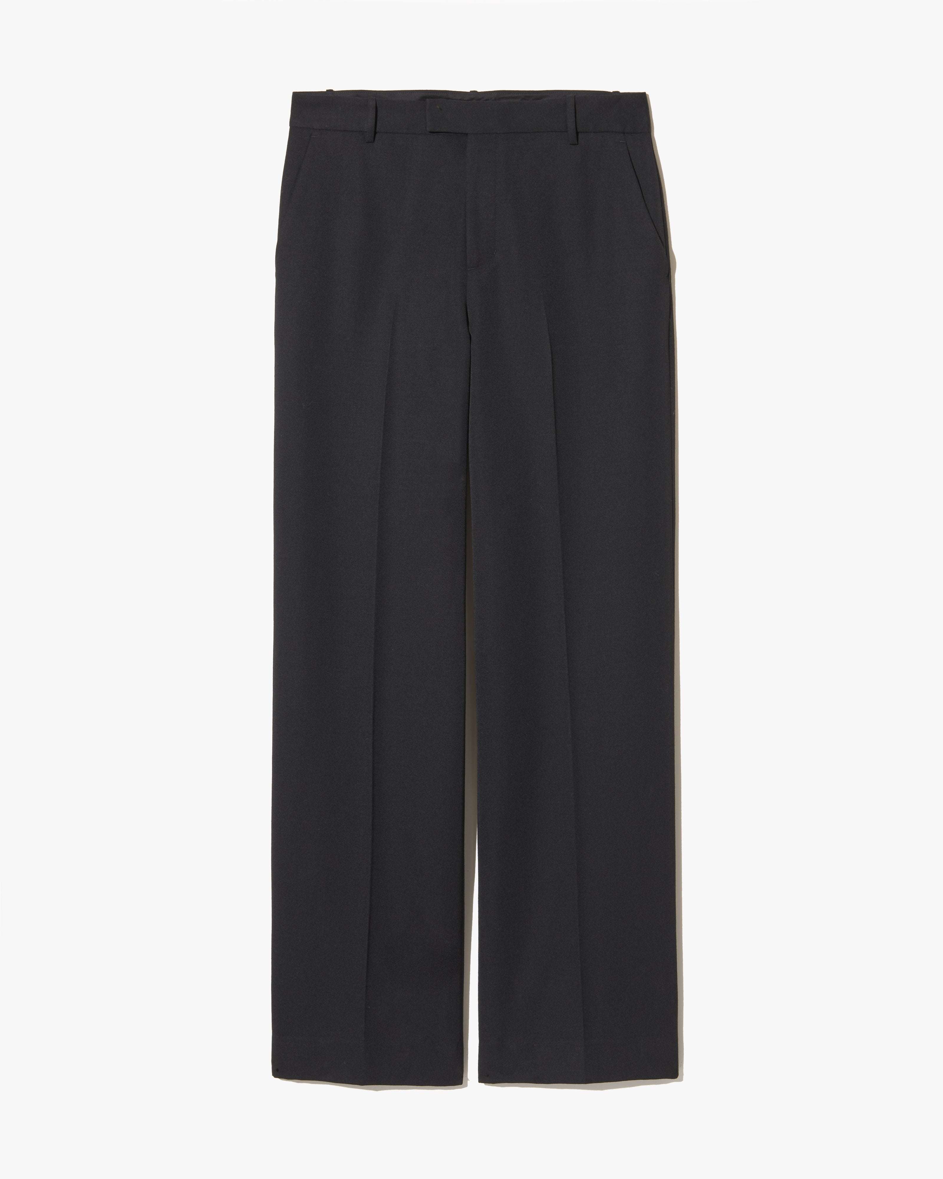 Relaxed straight leg pant. Wide leg opening. Side slant pockets. Fully constructed waistband with curtain. Hook and bar closure. Internal coin pocket. Back welt pockets with button closure. Designed for a 34" inseam. COMPOSITION & CARE 100% Virgin Wool Dry clean only