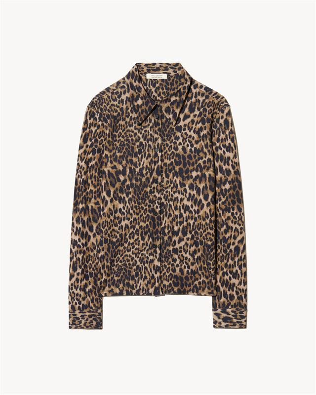 Long sleeve, slim button down shirt. Full front opening. Longer pointed collar. Straight hem. Custom dyed-to-match buttons at down the front and at the cuff. Compact, natural stretch. - Made in USA - 100% Viscose - Dry clean only