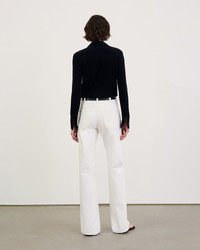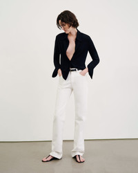 Long sleeve, slim button down shirt. Full front opening. Longer pointed collar. Straight hem. Custom dyed-to-match buttons at down the front and at the cuff. Compact, natural stretch. - Made in USA - 100% VISCOSE - Dry clean only - Low iron