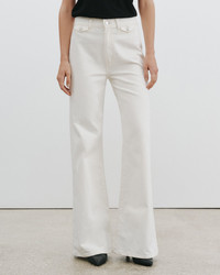 High-rise jean with flare leg in Japanese non-stretch denim. Front shank pocket detail. Back patch pockets with darting. Belt loops at waistband. Designed for a 33" inseam. - Made in USA - 100% Cotton - Machine wash cold - Do not bleach - Tumble dry low - Medium iron - Do not dry clean