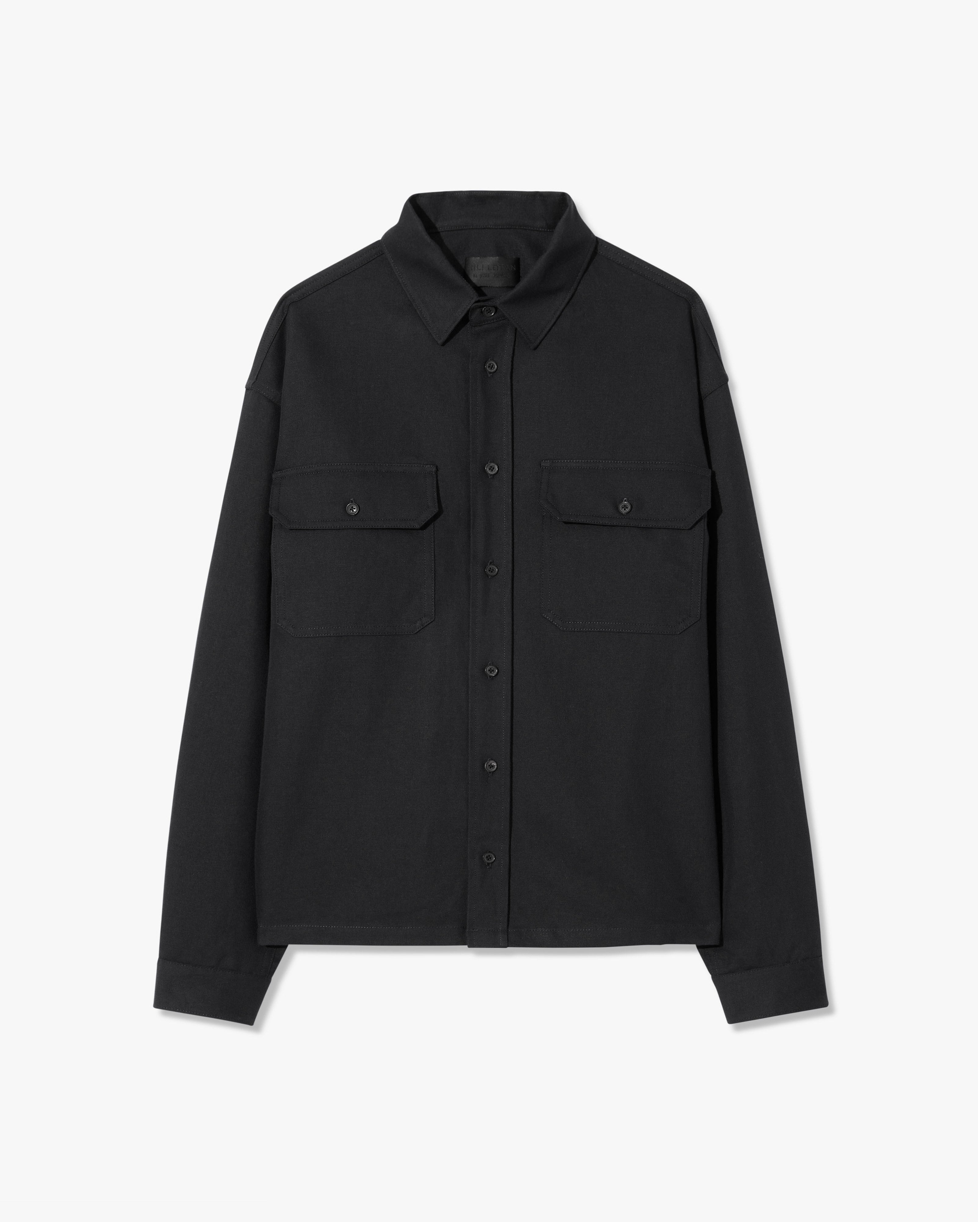 Relaxed boxy button up shirt. Patch pockets with flaps. Logo buttons. Buttons at center front, chest pockets and cuffs. Straight hem. Back yoke. - 71% Cotton 29% Linen - Dry clean only - Low iron