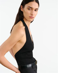 The ultimate day-to-night halter top, this 100% silk ribbed knit fits slim with an open back and finished with a ribbed trim at the neckline. SIZE & FIT Model wears size S. Size S measures approximately 20 1/4" body length, 6 1/2" neck width seam to seam back, 11 3/8" chest width, 11 3/8" hem width COMPOSITION & CARE 100% SILK, IMPORTED DRY CLEAN RECOMMENDED