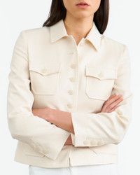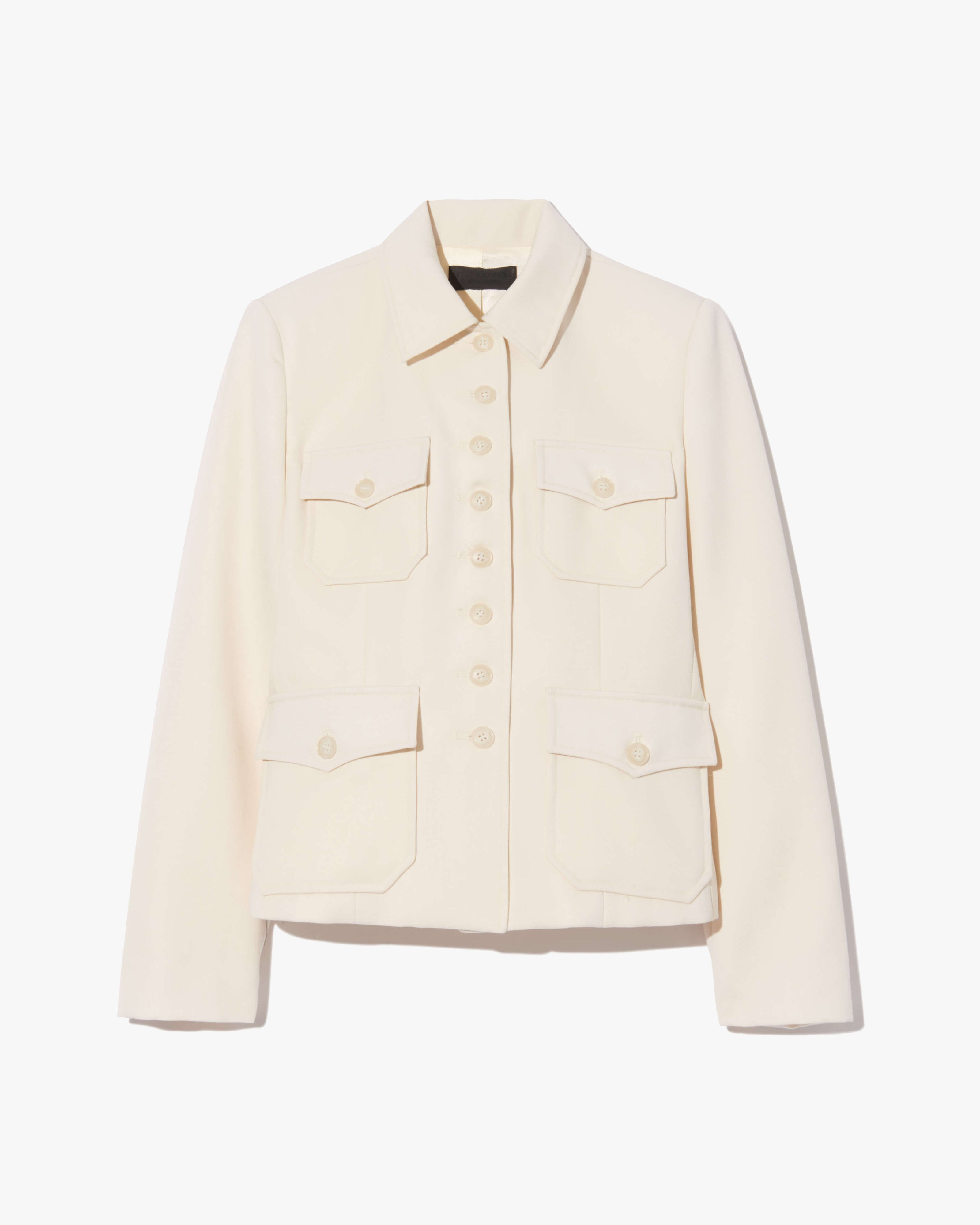 Slim fit collared jacket in Italian wool. Chest patch pockets with flaps. Patch pockets with flaps. Logo horn buttons. Buttons at center front and cuff. Fully lined. COMPOSITION & CARE 100% Virgin Wool Dry clean only