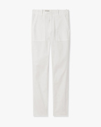 Flat front low waist slim angle length pant. Raw hem. Patch front pockets. Flap back pockets. Made in USA SIZE & FIT Model is 5'11 and wears a size 4. Waist allows for more stretch while calf and thigh are designed for a slim fit. For exact measurements by size, view our size guide. COMPOSITION & CARE 98% COTTON, 2% ELASTANE DO NOT BLEACH MACHINE WASH COLD TUMBLE DRY LOW LOW IRON