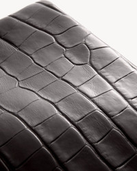 Frame clutch bag in Italian embossed croc (stamped calfskin). Italian suede lining. Small structured base allows it to stand upright or be folded over for styling versatility. Interior back wall pocket. No exterior logo. Interior debossed NILI LOTAN NEW YORK “Made In” logo. Interior hardware only. Expertly crafted by Italian artisans. Exterior leather is sourced from LWG-certified Italian tanneries committed to sustainable practices. Interior suede is specifically designed for high-end lining. All hardware is nickel-free, hand-plated in a custom gold finish developed exclusively for Nili Lotan. Dimensions (Inches) : 10.75” Height , 11.5” Length , 1.75” Depth at Base - Shiny Embossed Croc - Professional leather care only