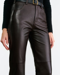 High-rise slim straight leg pant in Turkish leather. Fitted through hips. Five pocket details. Zip fly. Shank closure. Belt loops. Seam detail. Dropped in lining. Designed for a 34" inseam. - 100% Lambskin Leather - Spot clean only - Professional leather care only