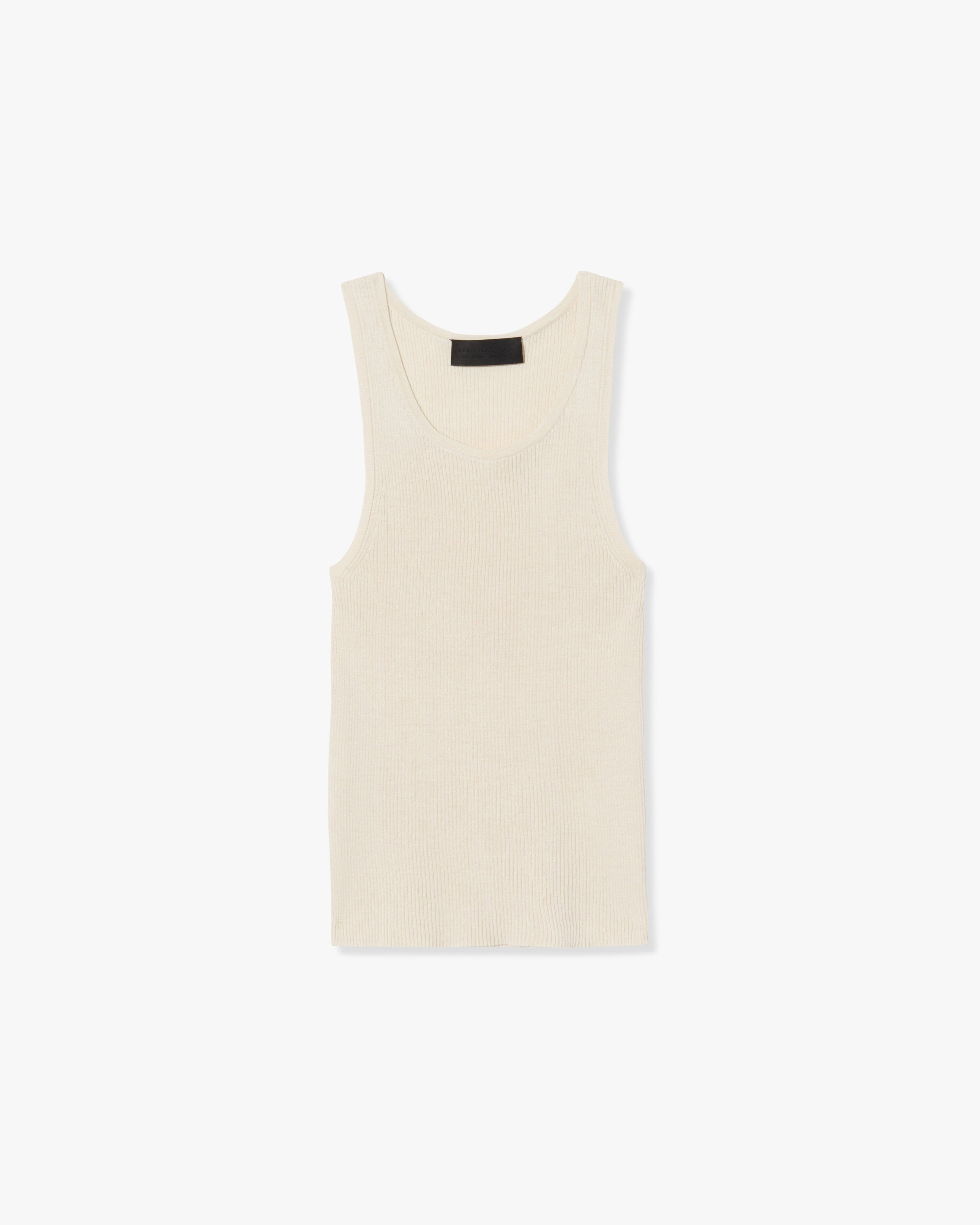 Fine gauge semi-sheer slim tank. Fully fashioned along neck and arm hole.
