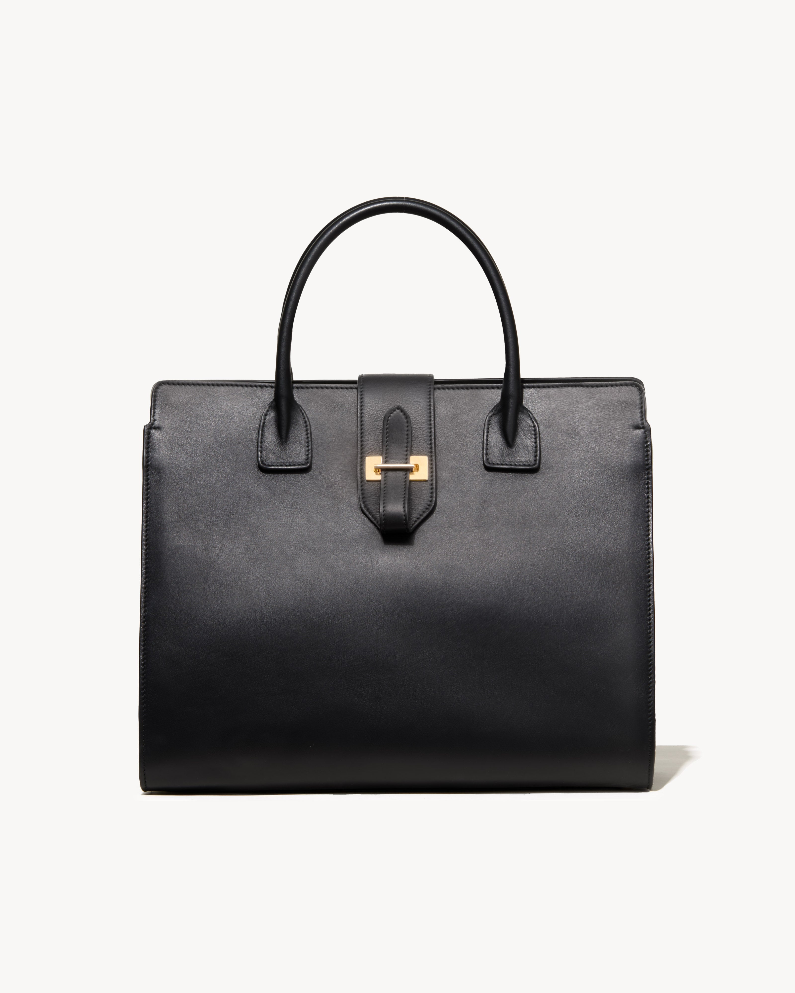Top-handle bag in luxurious Italian smooth leather. Italian suede lining. Removable strap for versatile wear. Interior back wall zip pocket. Semi-structured silhouette. Soft handfeel that collapses intentionally over time. No exterior logo. Interior features a debossed NILI LOTAN NEW YORK “Made In” logo. Expertly crafted in Italy. Leather is sourced from LWG-certified Italian tanneries committed to sustainable practices including energy conservation and water stewardship. Hardware is nickel-free, hand-plated in a signature custom gold finish developed exclusively for Nili Lotan. Dimensions (Inches): 12” Height , 14” Length , 5.5” Depth , 5” Handle Drop , 15.5” Shoulder Drop - Smooth Leather - Professional leather care only