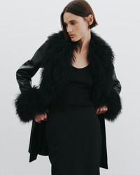 Flat front, mid-rise skirt. Front slit. Welt back pockets. Center back invisible zipper with hook-and-eye closure. Made in USA COMPOSITION & CARE 100% VIRGIN WOOL, MADE IN USA OF IMPORTED FABRIC DRY CLEAN ONLY