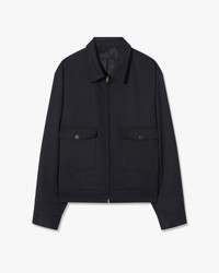Relaxed, boxy zip up collared jacket in wool. Slightly dropped shoulder. Center front zip closure. Front patch pockets. Horn buttons at sleeve cuff and waistband. Interior chest pocket. Not constructed. Fully lined. Made in USA COMPOSITION & CARE 100% VIRGIN WOOL DRY CLEAN ONLY