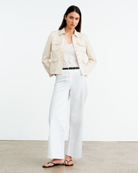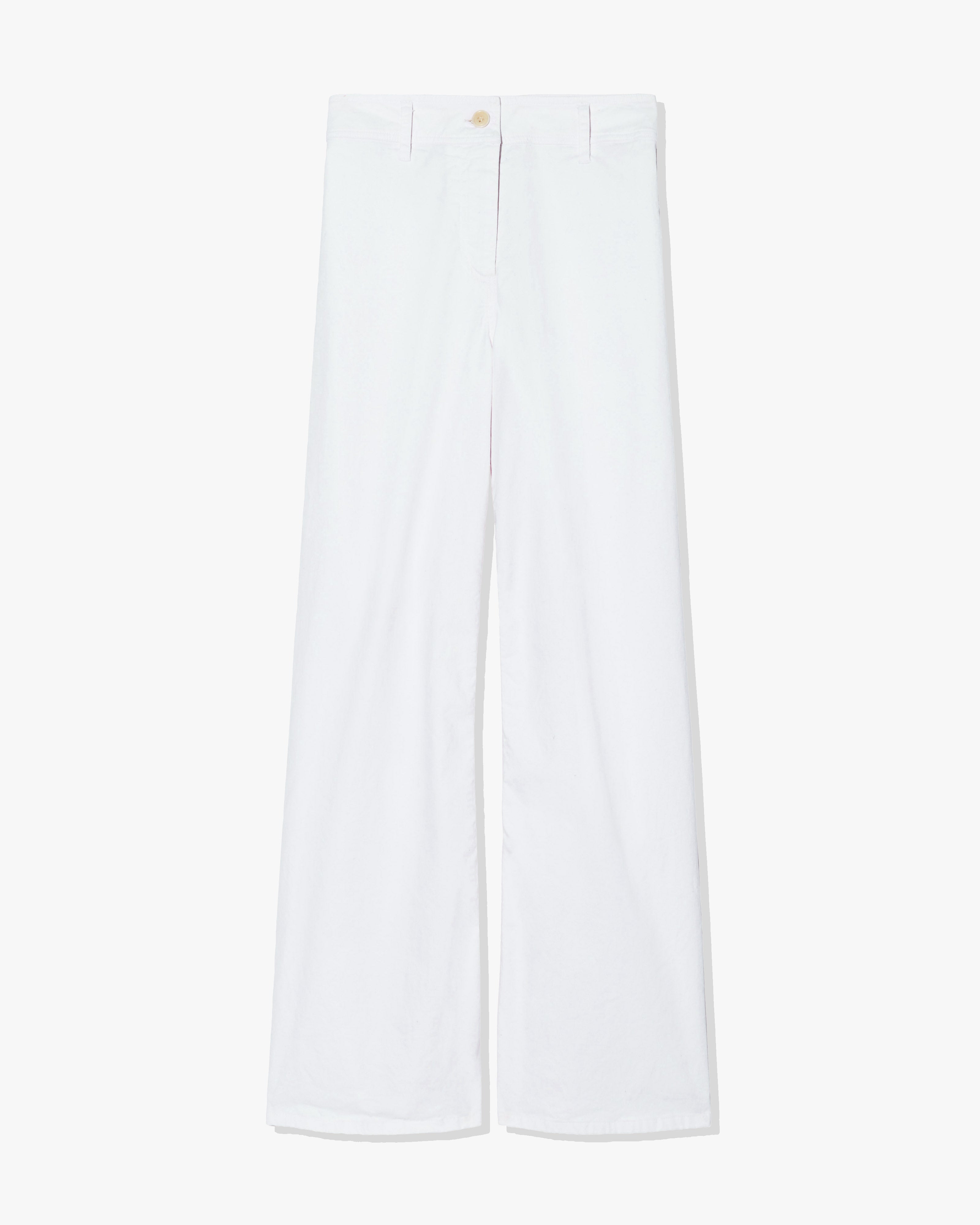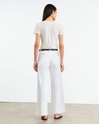 High-rise wide-leg pant in soft brushed stretch twill. Fitted through waist and hip, opens to easy leg. Shorter inseam, hits at ankle. Zip fly and button closure. Clean flat front, with no pockets. Back patch pockets. Made in USA SIZE & FIT Model is 5'11 and wears a size 4. For exact measurements by size, view our size guide. COMPOSITION & CARE 98% COTTON, 2% ELASTANE MACHINE WASH COLD DO NOT BLEACH TUMBLE DRY LOW LOW IRON